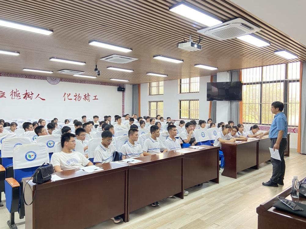 活动分为学术报告与实验室研习两大环节。学院黄都教授介绍了化学化工领域的前沿进展及社会应用;随后,学生们分组进入8个特色实验室,在导师和研究生指导下开展实践。在化工实验室,学生们观摩了新型材料合成过程;在分析测试中心,精密仪器的工作原理引发学生关注;在有机化学实验室,互动式实验演示让抽象知识变得生动。研习过程中,学生们认真记录、积极提问。